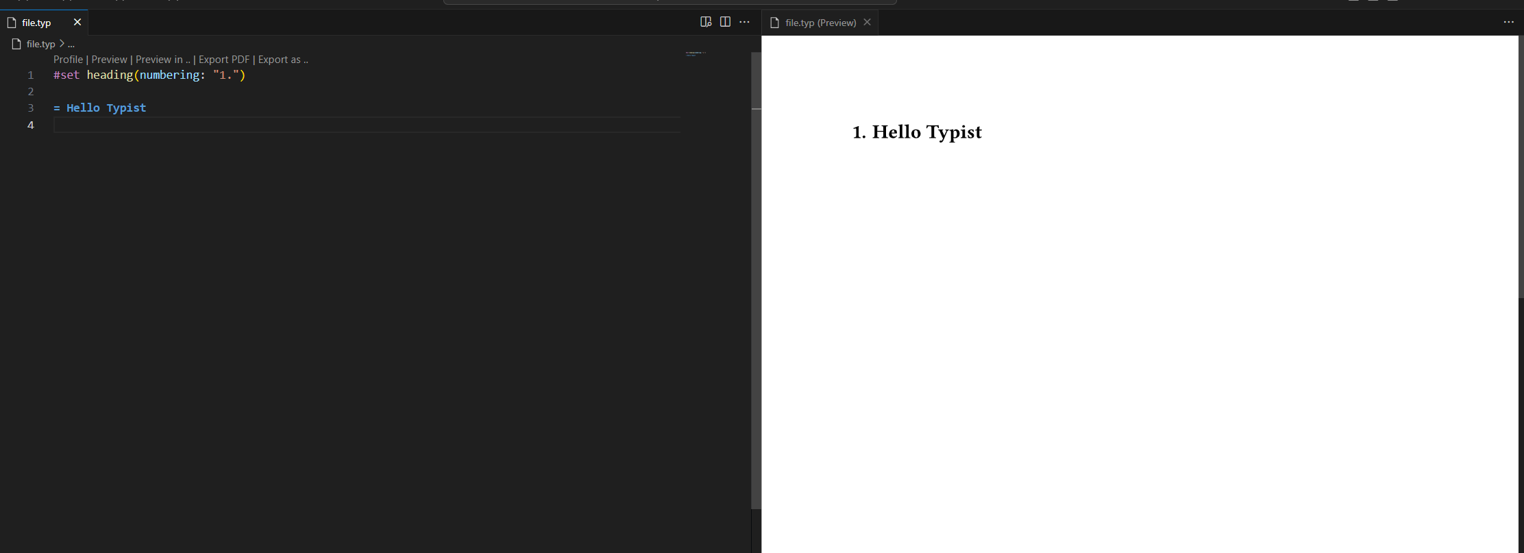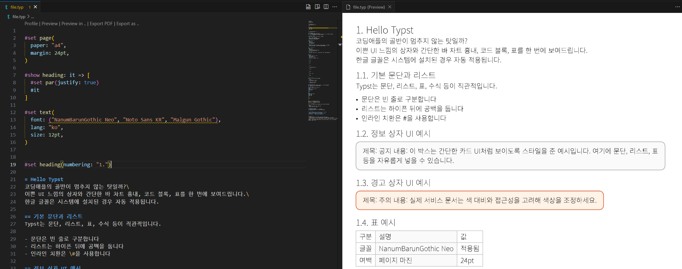 대충 맨 위에 있는걸 설치하고, `file.typ`를 생성해보았습니다.