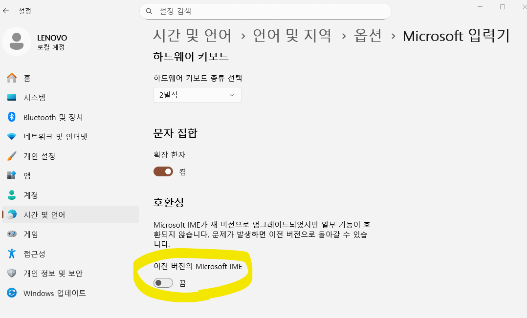 삼성 노트 (Samsung Notes) PC 버전 한글 입력 에러 - 윈도우11문제 현상삼성 노트 PC버전 한글 입력시 자음 모음 분리다음과같이 자음 모음이 분리되어서 입력이 됩니다해결 방법1. Microsoft IME 버전 설정Windows 설정에서 Microsoft IME 버전 변경 하여 증상을 해결할 수 있었습니다.윈도우11은 메뉴가 윈도우10이랑 조금 다릅니다. 경로Windows 설정 → 시간 및 언어 → 언어 및 지역 → 언어 옵션 ('한국어' 우측의 더보기 아이콘) → 키보드 옵션 (Microsoft 입력기 더보기 아이콘) → 이전 버전의 Microsoft IME 끔 으로 변경2. Windows + H 단축키단축키 눌리면 Microsoft Text Input Application 실행되어서 이..